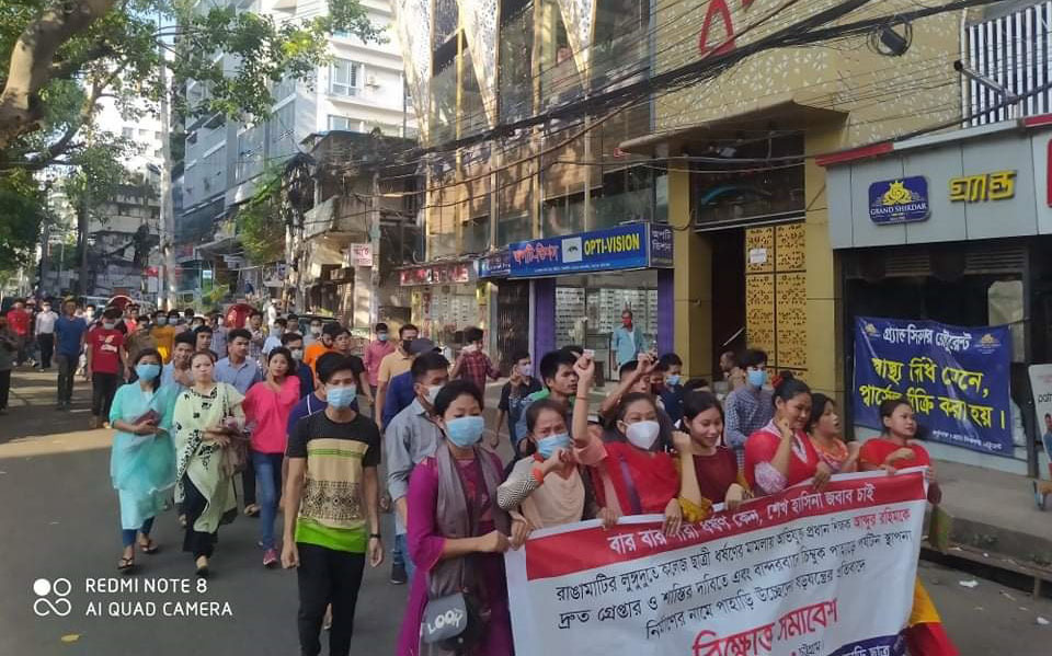 রাঙামাটির লংগদুতে কলেজ ছাত্রী ধর্ষণের অভিযুক্ত প্রধান শিক্ষক মোঃ আব্দুর রহিমের দৃষ্টান্তমূলক শাস্তির দাবিতে এবং বান্দরবানের চিম্বুক পাহাড়ে পর্যটন স্থাপনা নির্মাণের নামে পাহাড়ি উচ্ছেদসহ সারা দেশে অব্যাহত নারী নির্যাতনের বিরুদ্ধে চট্টগ্রাম নগরীতে বিক্ষোভ সমাবেশ করেছে গণতান্ত্রিক যুব ফোরাম, পার্বত্য চট্টগ্রাম নারী সংঘ ও পাহাড়ি ছাত্র পরিষদ (পিসিপি)।