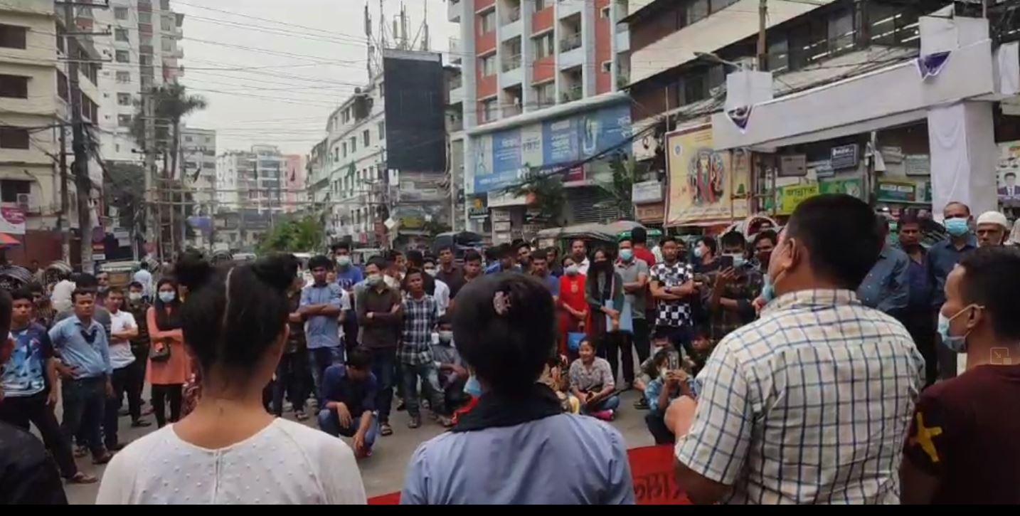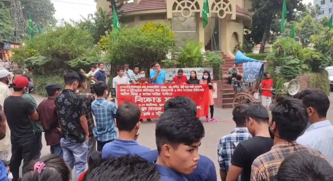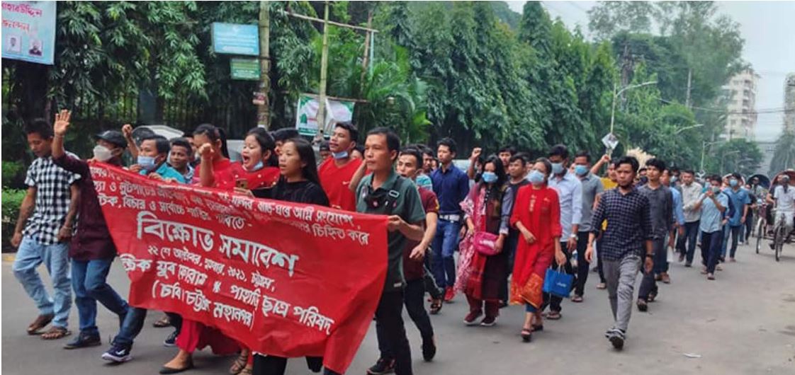 আজ শুক্রবার (২২ অক্টোবর ২০২১) বিকেল ৩ টায় নগরীর নন্দনকানন বৌদ্ধ বিহার মোড়ের সামনে থেকে একটি বিক্ষোভ মিছিল বের করা হয়। মিছিলটি গুরুত্বপূর্ণ সড়ক প্রদক্ষিণ করে প্রেসক্লাব ঘুরে চেরাগী মোড় চত্বরে তারা প্রতিবাদ সমাবেশ করেন।